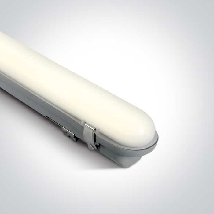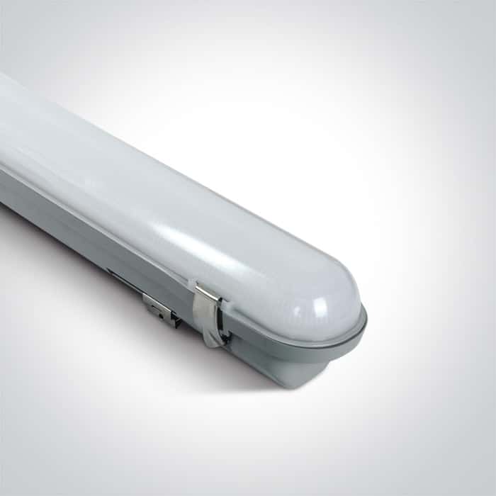 Luminaire LED IP65 destiné à remplacer les luminaires fluorescents traditionnels T8 IP65 étanches. Clips en acier inoxydable inclus. Corps et diffuseur en polycarbonate. Fourni avec un driver LED non gradable. Conforme à la norme EN60598-1 et à toute autre norme spécifique.