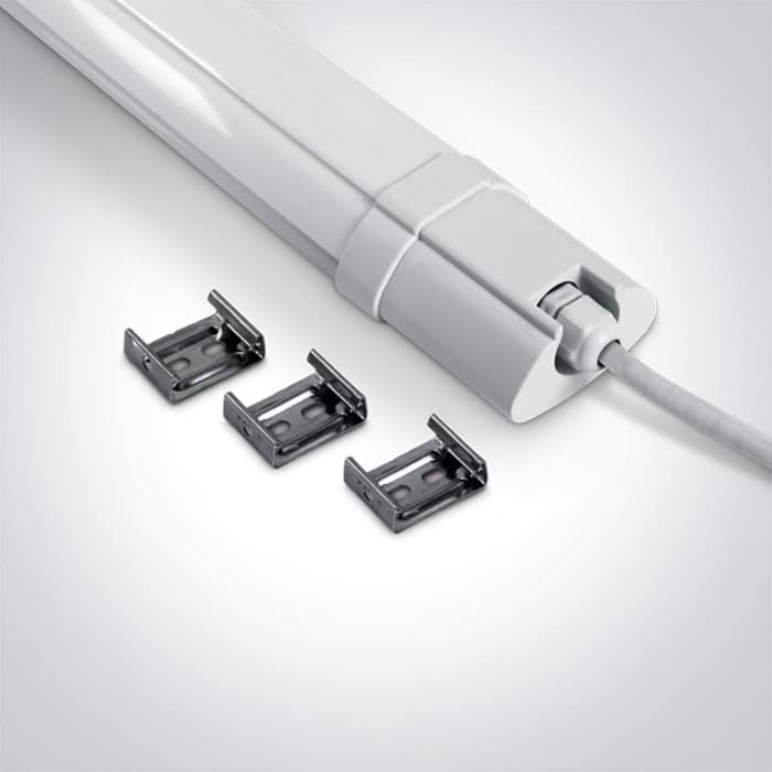 Luminaire LED mince IP65. Clips en acier inoxydable inclus. Corps et diffuseur en polycarbonate. Fourni avec un driver LED non gradable. Conforme à la norme EN60598-1 et à toute autre norme spécifique.