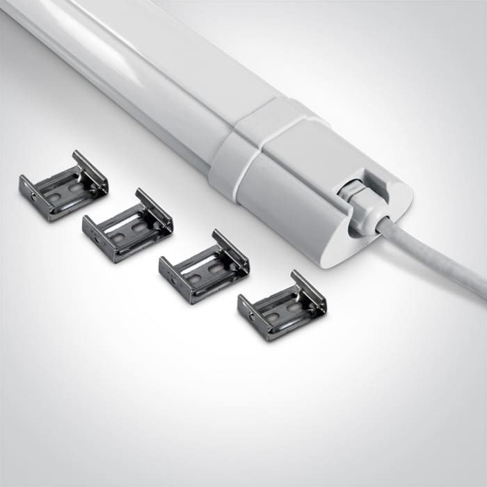 Luminaire LED mince IP65. Clips en acier inoxydable inclus. Corps et diffuseur en polycarbonate. Fourni avec un driver LED non gradable. Conforme à la norme EN60598-1 et à toute autre norme spécifique.